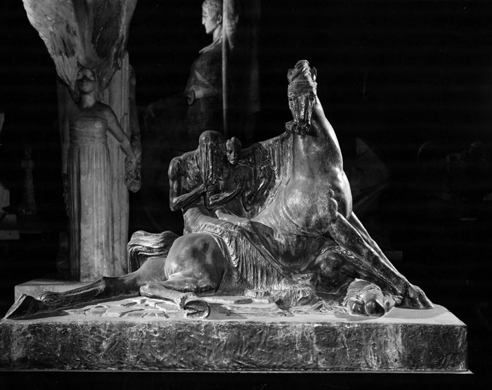„Skuld" riddarinn er ríður niður náunga sinn - hefur í sama vetfangi draug þann er hann sjálfur vakti upp með ofbeldi sínu - sitjandi á bak við hann á þessum sligaða hesti - minnandi hann um skuldina er honum ber að borga.