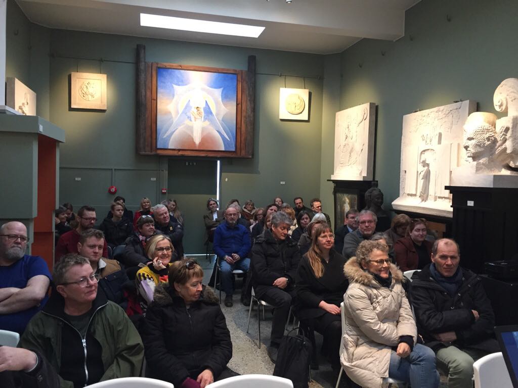 Ólafur Kvaran, prófessor í listasögu og fyrrverandi safnstjóri Listasafns Einars Jónssonar, leiddi áhugasama safngesti um safnið einn sunnudagseftirmiðdag síðla í mars og fræddi um verk Einars. Góður rómur var gerður að leiðsögn Ólafs sem opnaði augu gesta fyrir einstökum táknheiminum í list myndhöggvarans.