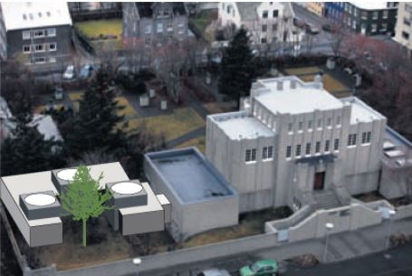 Mynd af áætlaðri staðsetningu viðbyggingar samkvæmt hönnun Studio Granda (Fréttablaðið, 23. nóvember 2010)